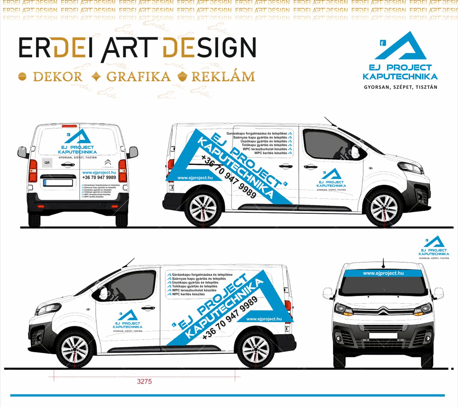 Egyedi autógrafika készítése meghatározott színek és arculat alapján. A megrendelő szabad kezet adott a tervezés során, így az autóra egy megújított, saját tervezésű logó került.