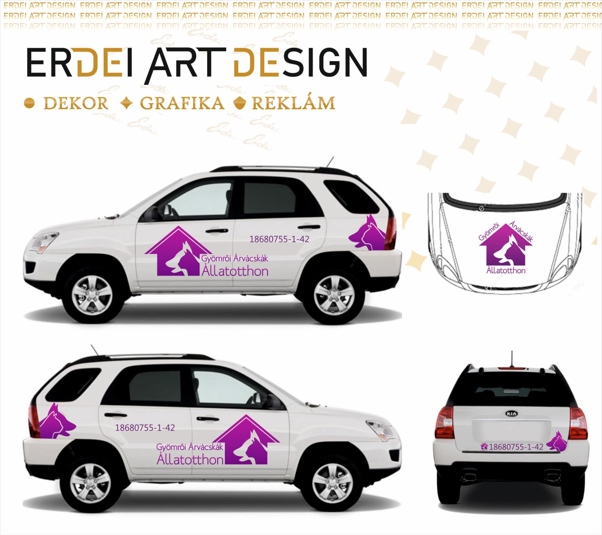 Egyedi autógrafika készítése meghatározott színek és arculat alapján. A megrendelő szabad kezet adott a tervezés során, így az autóra egy megújított, saját tervezésű logó került.